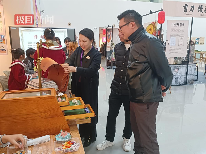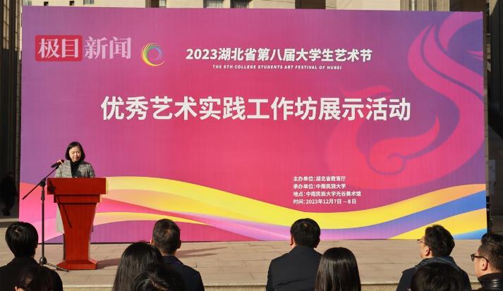 12月7日上午,由湖北省教育厅主办、中南民族大学承办,以“厚植家国情怀,涵养进取品格”为主题的湖北省第八届大学生艺术节优秀艺术实践工作坊展示活动开幕式在中南民大美术馆举行。人们驻足在各具特色的艺术工作坊前,体验皮具手工、陶瓷制作、程河柳编……针线在布料中穿梭,柳条在手中翻转,来自各个高校的师生们在动手创作中感受非遗技艺,体验艺术之美。